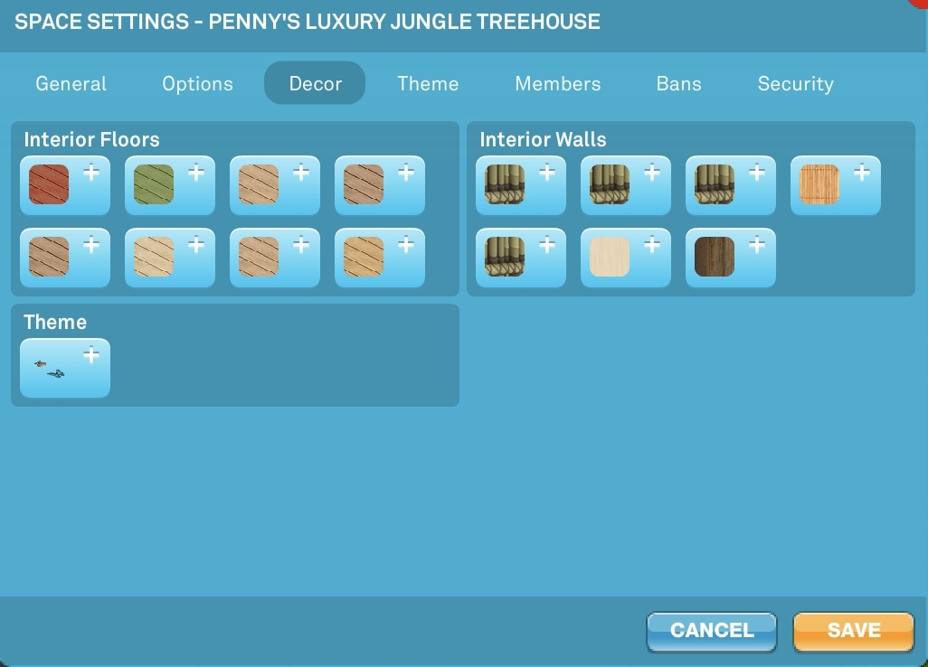 Decor options for Jungle Treehouse